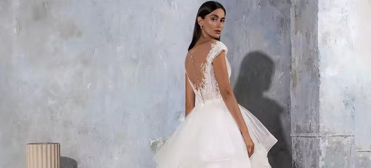 Einführung » Brautmode Kollektion 2025 2026 » A Linie Brautkleid Elikapeka mit Raffungen und Spitze