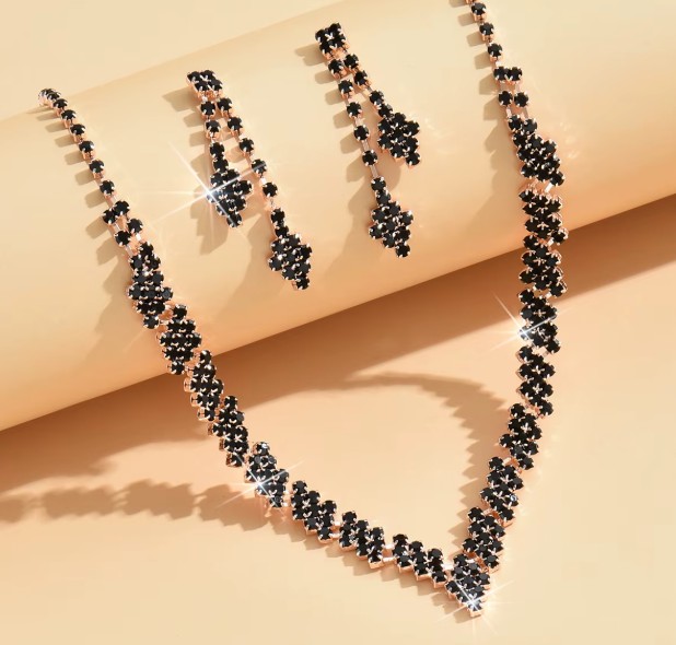 Einführung » Accessoires » Brautschmuck Set Elsa Halskette mit Ohrringe Gold Schwarz