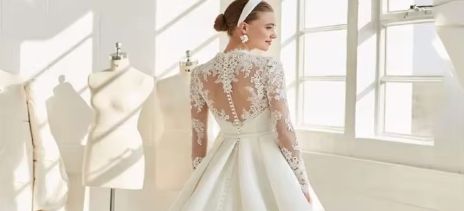 Einführung » Brautmode Kollektion 2025 2026 » Langarm A Linie Brautkleid Editha mit Tattoo Spitze
